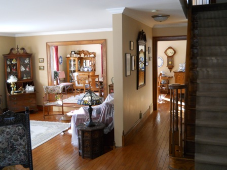 Walking through the front door you are immediately greeted with a magnificient view (representative of the entire Residence) of the wood trimmings of the staircase and the wide expanse of solid oak flooring. A generous coat closet is provided here - and after only a few steps, your guests will be enjoying the living and dining areas. |
